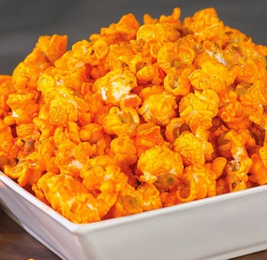Forma y estructura: los granos de mushroom estallan en esferas compactas, con una “cabeza” redondeada y uniforme. Esto las hace ideales para recibir coberturas densas, pues su robustez evita que se fragmenten al mezclar sabores o salsas (nebraskapopcornusa.com).